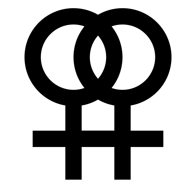 Double Venus Symbol – Two interlocking Venus symbols representing lesbians or sex between women. The symbol of the goddess Venus is used to represent the female sex or gender while Mars represents male.